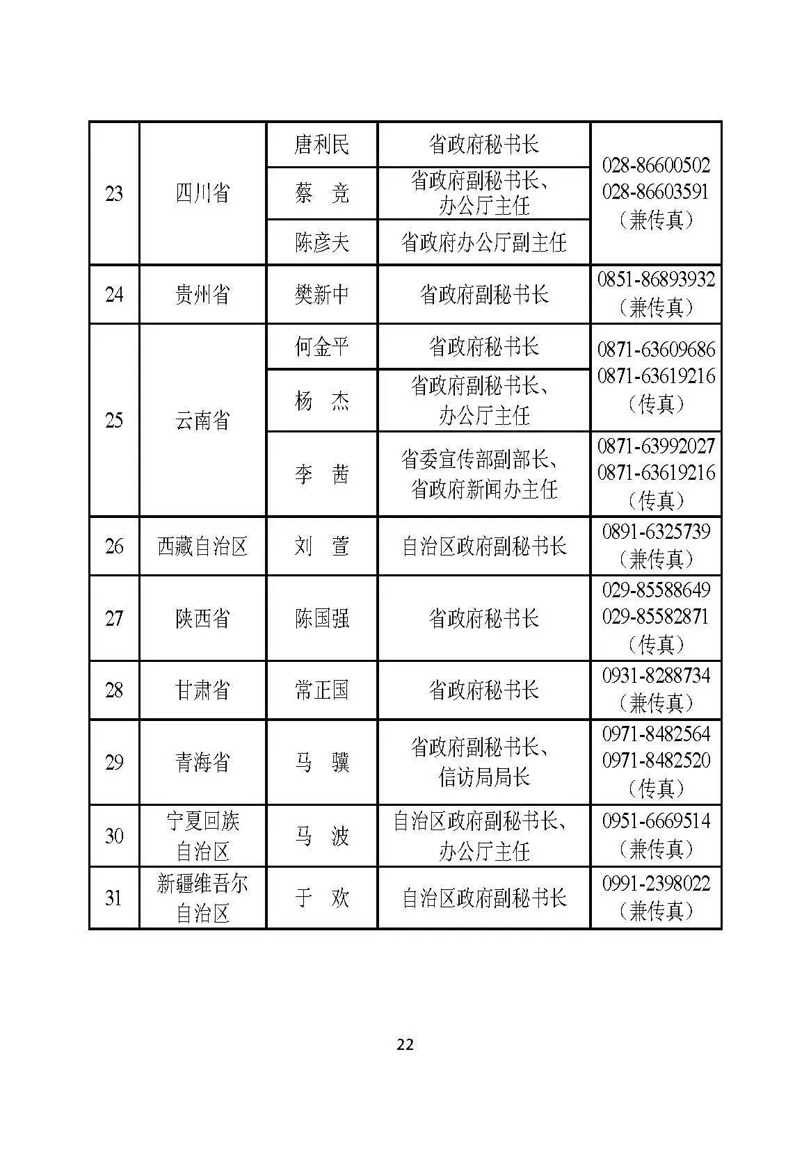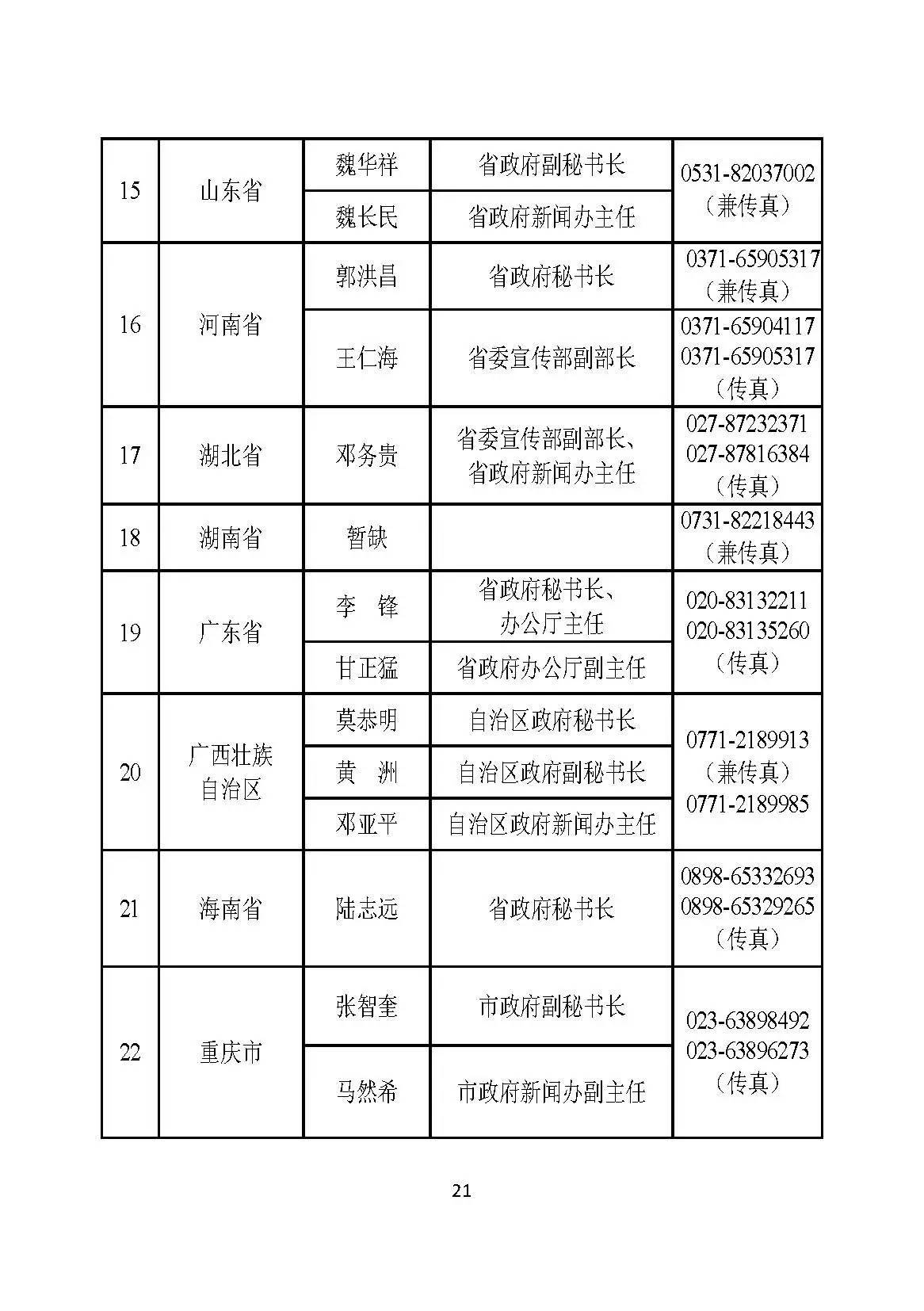 | ▌本文来源:国新办客户端、人民网 2016年12月15日,中央国家机关和地方2017年新闻发言人名录发布。该名录包括中共中央有关部门和国务院有关部门、人民团体和最高法、最高检,以及各省区市发言人名单和联系方式。记者梳理发现,与上年度名录对比,有40多个中央国家机关有关部门调整了发言人。  ▲ 国防部发言人杨宇军(资料图) 多个部门发言人出现变更 2004年,国新办首次集中公布62个国务院部门75位发言人名单及联系方式,其后每年年末都会公布新的发言人名录。今年的新版名录包括13个中共中央部门、3个人民团体、最高人民法院、最高人民检察院和78个国务院有关部门发言人名单和联系方式,比去年增加了国务院发展研究中心、国家行政学院、国家自然科学基金会、中华全国供销合作总社四个部门。 中纪委去年公布的两名发言人中,原中纪委宣传部部长陈小江今年4月出任辽宁省委常委、省纪委书记,现任宣传部部长朱国贤出任发言人顺理成章。另外,监察部副部长肖培继续担任发言人。 外交部由于经常举行例行记者会,新闻发言人也频频出现在日常新闻报道中,新的名单也有变化,今年7月,原发言人洪磊履新芝加哥总领事,新闻司副司长耿爽加入到这个行列。 今年7月,媒体报道,最高人民法院新闻局原副局长、新闻发言人孙军工辞职。 根据公布的名单,最高法的新闻发言人由新闻宣传工作领导小组办公室副主任王玲担任。 一些部门增加了发言人数量 记者发现,有的部门在原来的基础上增加了一位新闻发言人,如公安部、司法部、全国妇联、央行、国家统计局等。安监总局更是由一位增至四位,黄毅不再担任发言人,杨富、苏洁、孙文德、薛剑光都是“新面孔”。人社部、国资委、食药监总局、中科院、国家禁毒办、国家邮政局等部门则进行了缩减,目前只有一位新闻发言人。 记者还发现,环保部新闻发言人暂时空缺,去年公布的名单中,新闻发言人由宣传教育司司长陶德田担任。 名录如下????                       (图自国新办客户端) 责任编辑:郑汉星 |