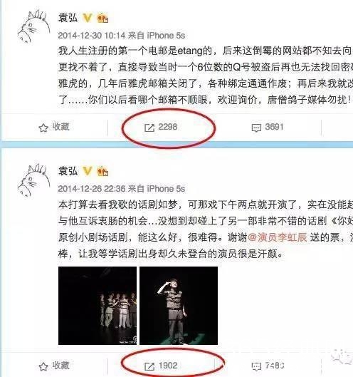 我随手查了下微博,袁弘和张歆艺恋爱之前,微博转发量尚且可以稳定在数千上下,
