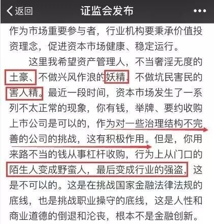 其实姚老板应该有一些心理准备吧。 毕竟12月3日证监会主席刘士余在公开场合发表演讲,首次对各种不正常举牌及杠杆收购作出了公开表态。